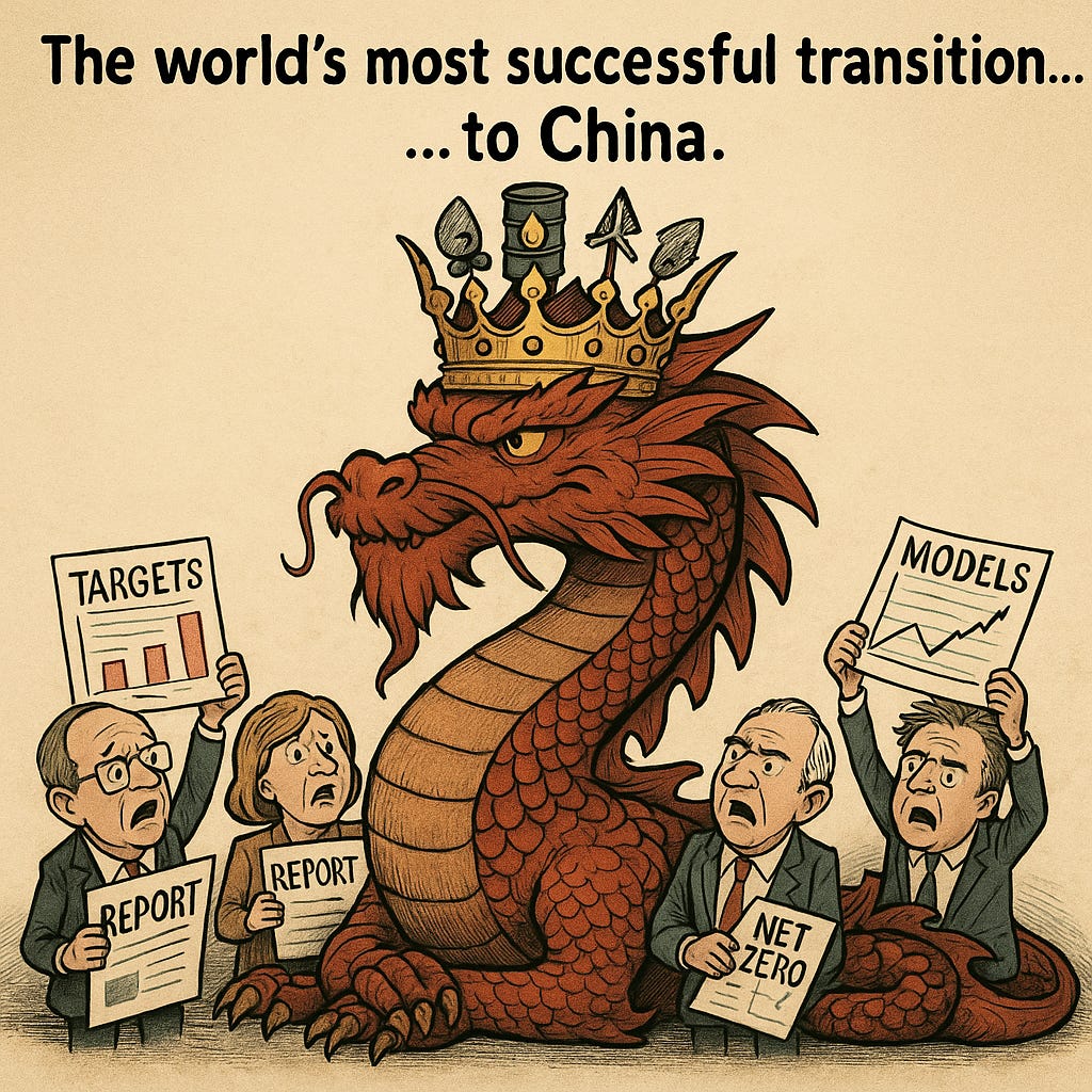 The energy transition turns out to be a giant ponzi scheme and the net result is rising emissions and a strategically stupid gift of industrial, economic and military power to Beijing.